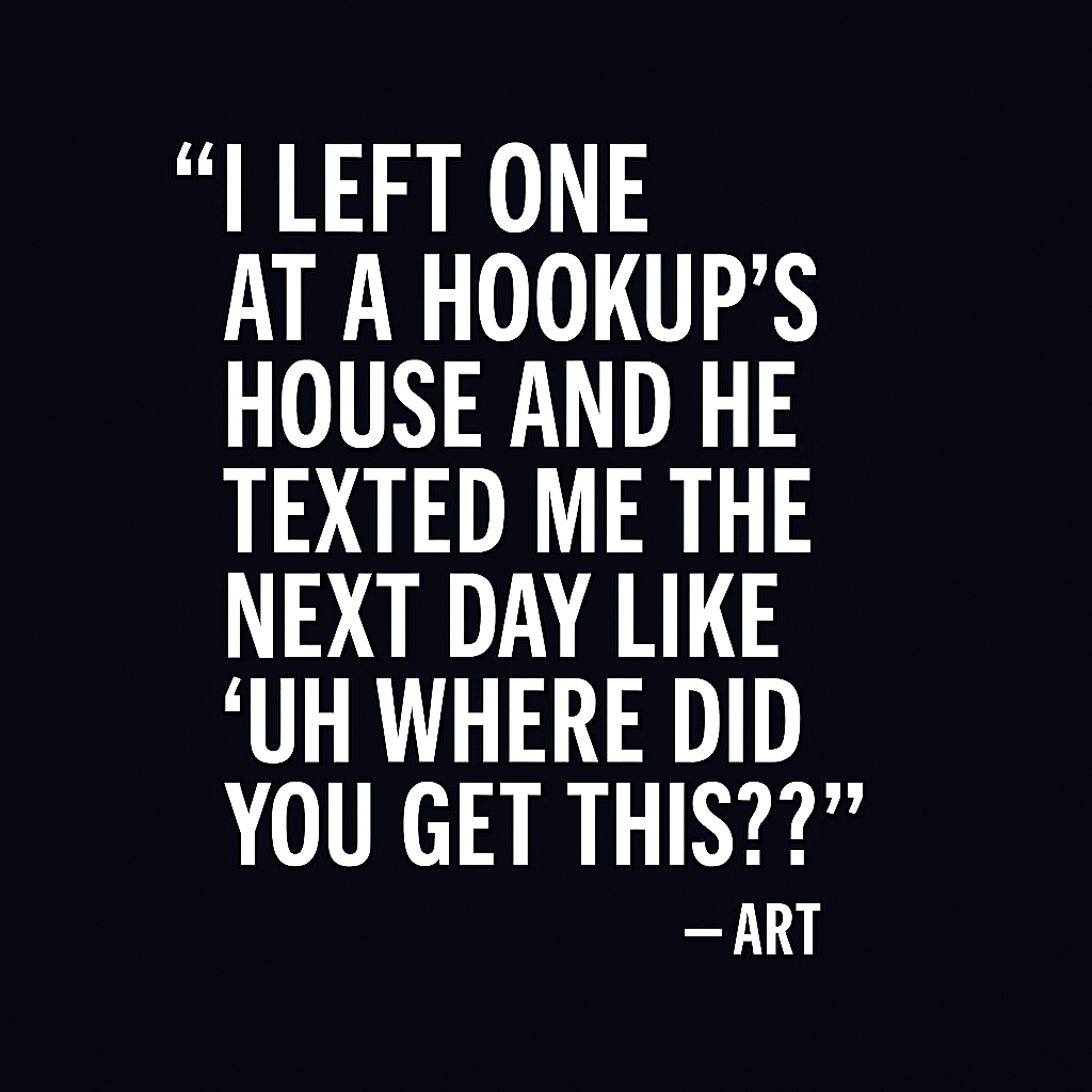 Lost and found energy. A black fleece towel for the friend who leaves things behind — dignity included. 6x6”, reusable, and deeply suggestive.